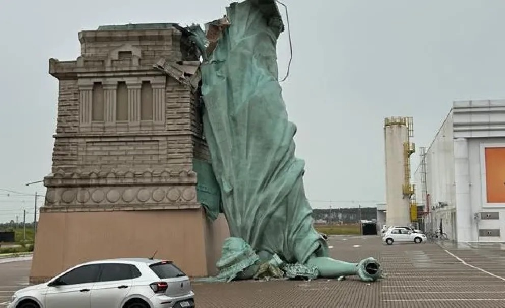 Guaíba, Brasil. — El viento sopló sin permiso y la libertad, de metal y concreto, no resistió. Un fuerte temporal de viento que azotó el sur de Brasil provocó la caída de una réplica de la Estatua de la Libertad instalada frente a un comercio de la cadena Havan, en la ciudad de Guaíba, estado de Rio Grande do Sul.
