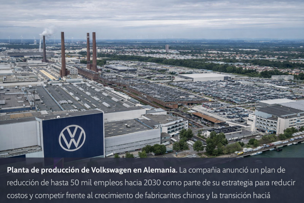 El gigante automotriz alemán Volkswagen anunció un recorte de aproximadamente 50 mil puestos de trabajo en Alemania hacia el año 2030, una medida que refleja la profunda transformación que atraviesa la industria automotriz mundial frente a la electrificación, la competencia asiática y los cambios en la demanda global.
